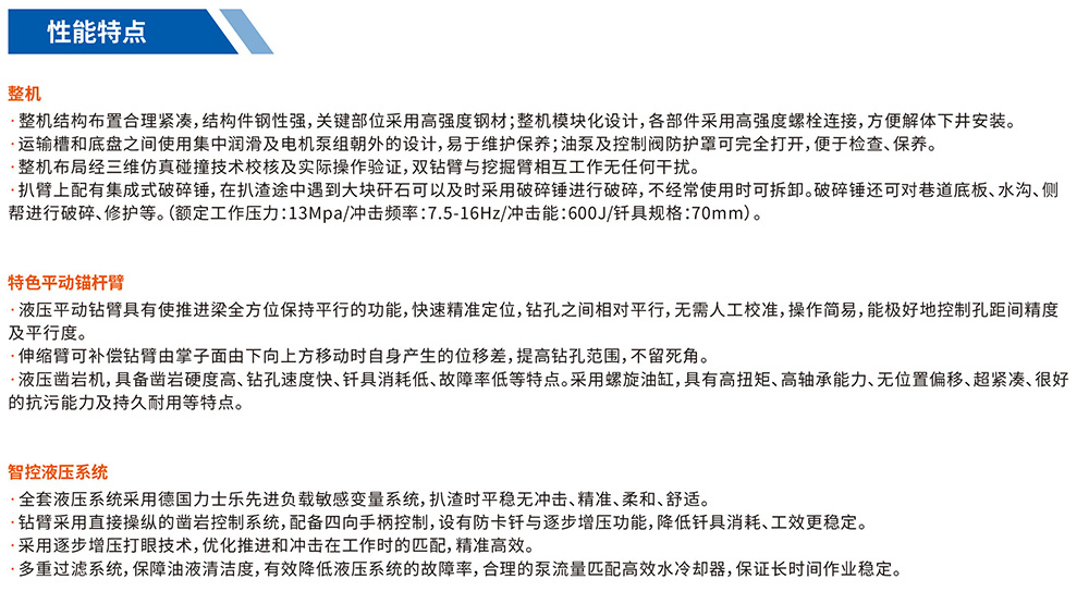 煤礦用巖巷鉆裝機組(簡稱“鉆裝機”)是一種集鑿巖與裝載兩種功能于一體的高效連續(xù)作業(yè)鉆裝機組。主要用于煤礦、引水洞以及其它工程巷道中的掘進作業(yè)。提高了掘進速度,降低了工人的勞動強度,有效保障了掘進施工作業(yè)的安全性,很好的實現了巖巷快速掘進的機械化作業(yè)需求,同時解決了中小巷道多種設備錯車問題。